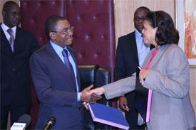 S.E. Mme WANDA NESBITT Ambassadeur des USA en Côte d'Ivoire et M. Charles Koffi DIBY, Ministre de l’Economie et des Finances, représentaient respectivement, les Etats- Unis d’AMERIQUES et l’Etat de Côte d'Ivoire.